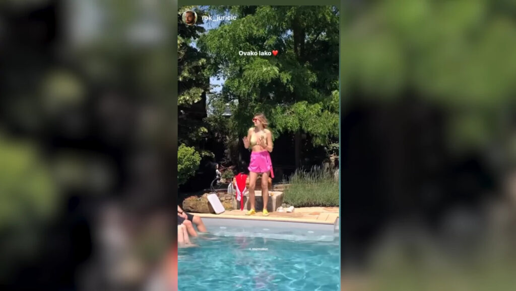 Nakon toga sportista i glumica organizovali su veliku žurku na bazenu na tom istom imanju. Po svemu sudeći novopečena mlada je igrala bez prestanka, nazdravljala i veselila. Podelila je video na kom u kupaćem kostimu pleše pokraj bazena.