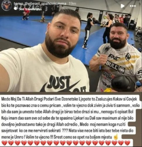 – Medo moj, neka ti alah podari sve lepote koje zaslužuješ. Svako ko te je poznavao zna o čemu pričam. Volim te večno, dok živim ja, živiš i ti sa mnom. Voleo bih da sam umro umesto tebe, ne mogu opisati bol koju imam. Dao sam sve od sebe da te spasimo, lekari su dali svoj maksimum, ali jednostavno nije bilo dovoljno. Medo moj, nemam koga ružiti, savetovati, ko će me sekirati. Ništa više neće biti isto bez tebe, deo mene je umro. Volim te večno. Srešćemo se na boljem mestu – napisao je on.