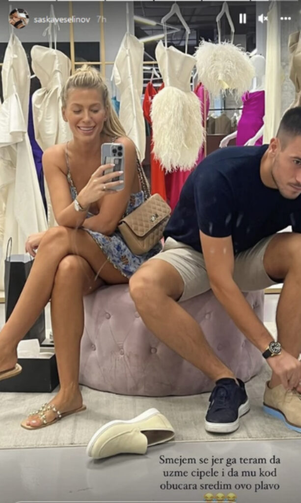 Naime, ona je uslikala Đorđa i nju u jednoj radnji u kojoj se prodaje svečana garderoba, a sudeći po opisu fotografije koju je postavila, Saška je bila rešena da nagovori svog partnera da uzme cipele, koje se njemu ne dopadaju u potpunosti.