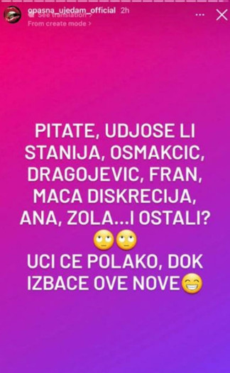 Kako su naveli u pomenutoj objavi, deo „Elite“ bi navodno trebalo da postanu i Stanija Dobrojević, koja je sinoć optužena da je rasturila brak i ukrala supruga starlete i nove učesnice rijalitija, Aneli Ahmić. Stanija, inače, već izvesno vreme uživa u ljubavi sa svojom novom jačom polovinom, koju je vešto krila od očiju javnosti, da bi se na kraju ispostavilo da se radi o izvesnom Asminu Durdžiću.
