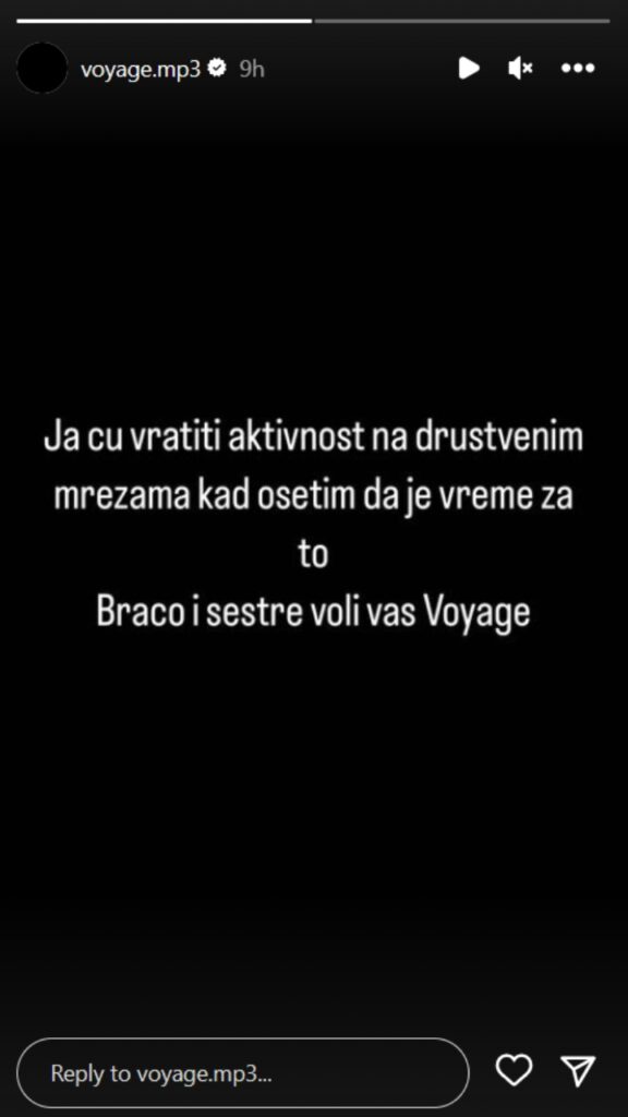 – Ja ću vratiti aktivnost na društvenim mrežama kad osetim da je vreme za to. Braćo i sestre voli vas Voyage – napisao je reper.