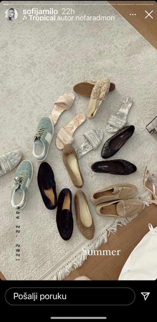 Međutim, i pored brojnih štikli koje poseduje u svom ormanu, lepa manekenka je pokazala koju obuću najčešće nosi tokom leta i svakodnevnih šetnji. Uglavom su tu ravne cipele i papuče.