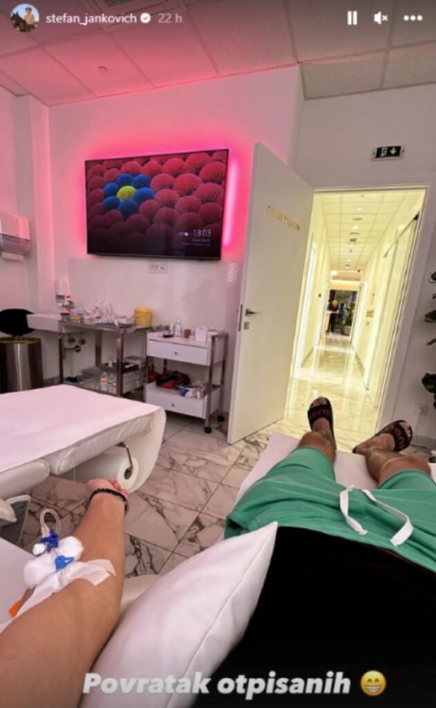 Janko je na Instagram storiju objavio kako leži, dok mu je u ruci priključena infuzija, te se oglasio i rekao kako se oseća: