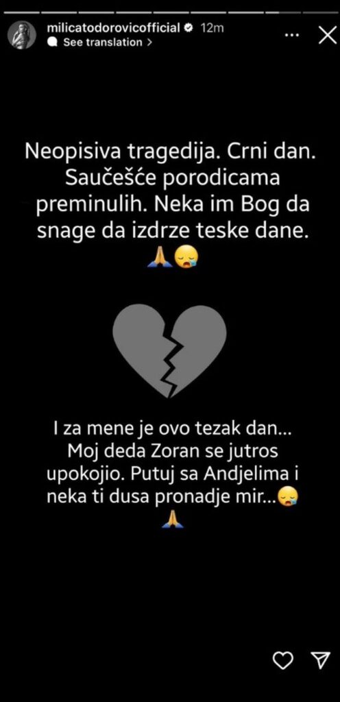 Brojni poznati izrazili su svoje saučešće porodicama nastradalih. Pevačica Teodora Džehverović je na Instagram priči napisala: „Saučešće porodicama“ uz tužni emotikon. Mladi reper Mihajlo Veruović Vojaž takođe je izrazio svoju tugu: „Saučešće svim porodicama koje moraju da prolaze ovaj horor. Molim se za vas.“