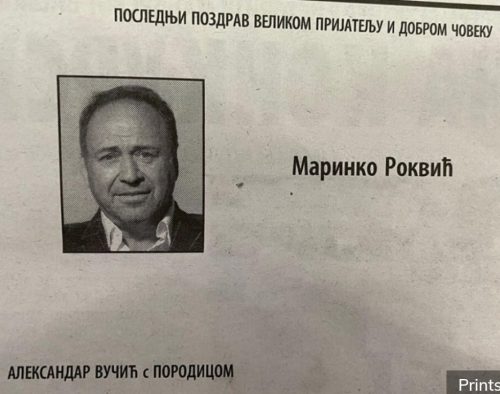 Predsednik Srbije Aleksandar Vučić od Marinka Rokvića oprostio se preko čitulja koje su objavljene u dve dnevne novine. – Poslednji pozdrav velikom prijatelju i dobrom čoveku. Aleksandar Vučić sa porodicom – piše u čitulji.