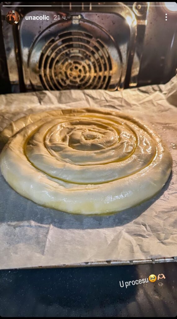 – U procesu – napisala je ona u opisu fotografije na kojoj se vidi kako priprema pitu.