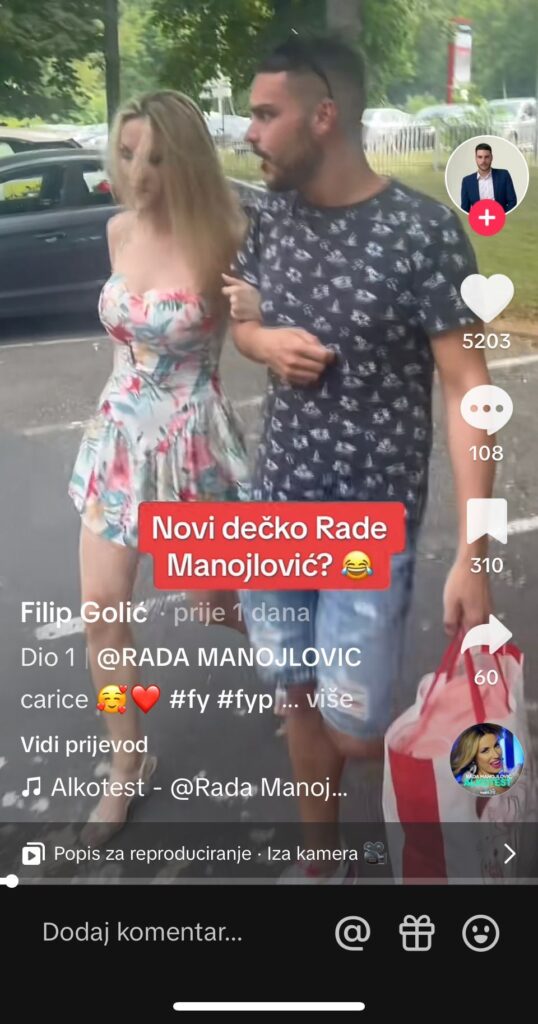 Svi pamtimo romansu koju je imala sa Milanom Stankovićem i Harisom Berkovićem, a sada je na društvenoj mreži TikTok osvanuo klip atraktivne pevačice kako se ruku pod ruku drži sa tiktokerom Filipom Golićem.