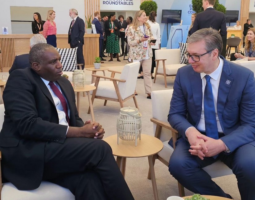 Predsednik Republike Srbije razgovarao je sa državnim sekretarom za spoljne i poslove Komonvelta Ujedinjenog Kraljevstva Velike Britanije i Severne Irske Dejvidom Lamijem. Sastao se i sa predsednikom Vlade Gruzije Iraklijem Kobahidzeom, sa predsednicom Švajcarske konfederacije Vajolom Amherdi. Sa predsednikom Republike Bugarske Rumenom Radevim. Predsednikom Republike Finske Aleksandrom Stubom.e sa predsednikom Vlade Kraljevine Španije Pedrom Sančezom. Sa predsednikom Vlade Ujedinjenog Kraljevstva Kirom Starmerom.