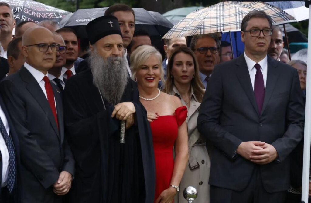 Zvanice u ambasadi dočekao je Kristofer. Hil u pratnji svoje supruge, koja je svojom odevnom kombinacijom prkosila kiši i tmurnom vremenu.