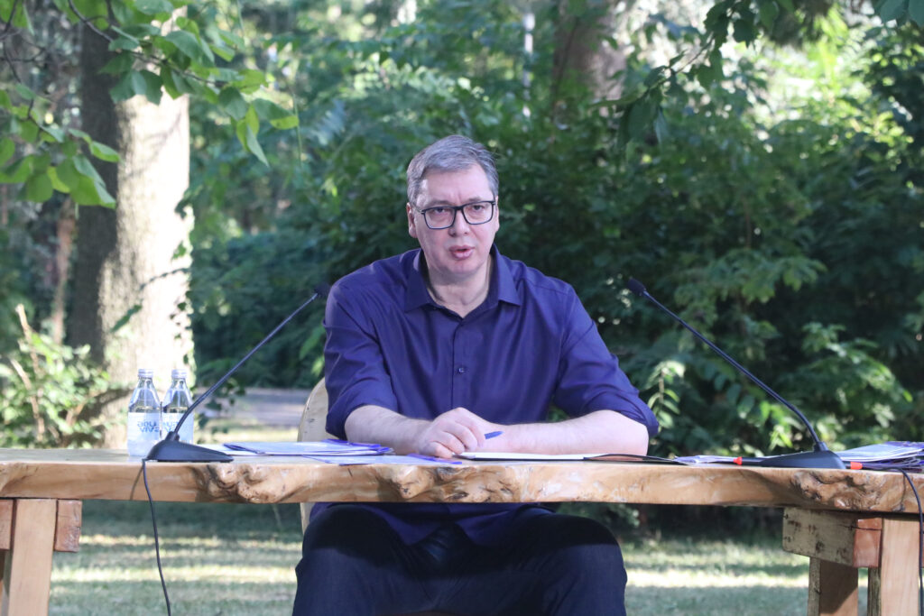 – Ne govorite vi ovde ni o Ani Brnabić, Dubravki, Vučeviću, ovde vam smetam ja. To je sve naredio jedan tajkun, kriminalac, Dragan Šolak, kojem sam se suprotstavio u želji da upravlja ovom zemljom. Ponosan sam na tu činjenicu što sam ja taj čovek, što se ne plašim njegovih veza ni u CIA, ni gde hoćete. 12 godina sam posvetio teškog i napornog rada. Nisam u tih 12 proveo ni jedan godišnji odmor u celini. Nisam bio dobar roditelj svojoj odrasloj deci, oni su moji sin i ćerka, nisam im bio dobar roditelj u tih 12 godina, nisam bio dobar roditelj ni trećem detetu, vreme je da razmišljam o tome šta ću drugo – istakao je Vučić i dodao: