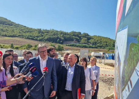 U svečanom govoru pre postavljanja kamena-temeljca, predsednik Vučić se obratio zvanicama, pozdravio ih i zahvalio se Palfingeru na dolasku.