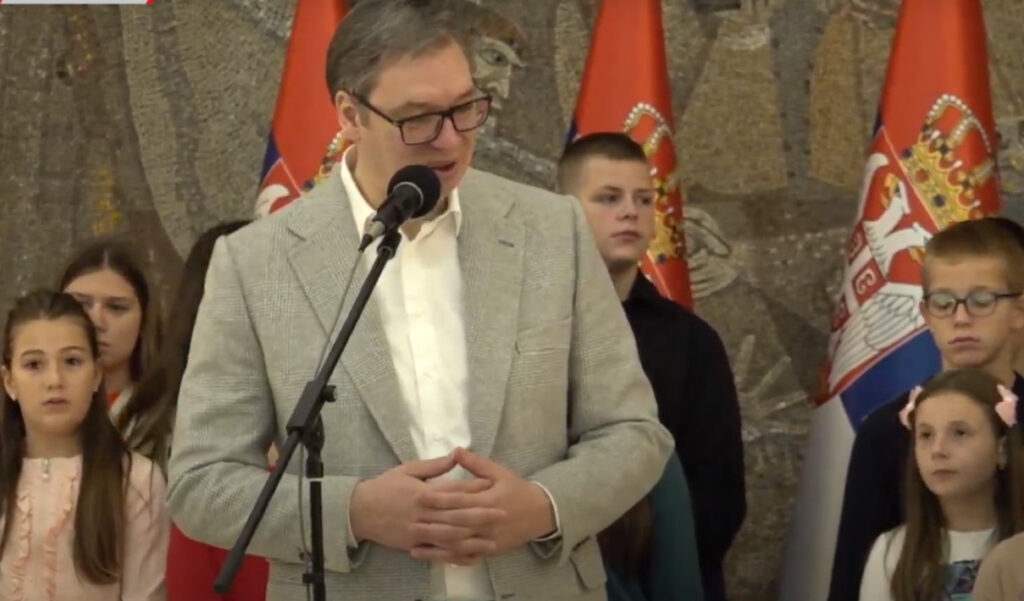 Vučić je na početku obraćanja istakao da mu je drago što su deca na putu do Beograda mogla da posete Žiču i Studenicu, ali i da u Beogradu obiđu sve institucije svoje srpske države.