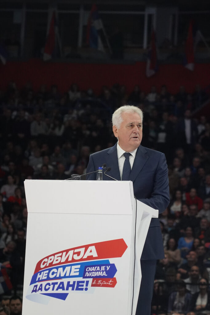 – Vi niste odstupili ni od jedne ideje koja me je vodila u politici. Izlagali su podsmehu moje tvrdnje da će nas EU staviti pred izbor. Danas je taj zahtev jasno pred vama, čak je i izrečen ultimativno, da se odreknemo Rusije. Znam da nećete popustiti. U vas gledaju naši preci, od vas zavisti budućnost naše dece.