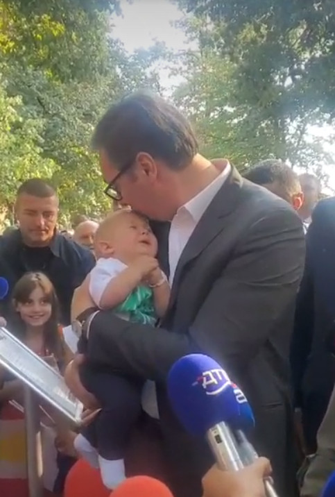 „Svi oni više vole Vojsku, i bebe“ – rekao je on pa poljubio bebicu. U tom trenutku jedan dečak mu je viknuo: