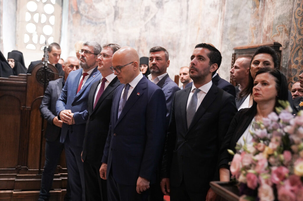 Predsednik Vlade Miloš Vučević prisustvuje danas liturgiji koju povodom praznika Vidovdana u manastiru Ravanica služe vladika braničevski Ignjatije i sveštenstvo SPC. Pre početka liturgije hor „Vozglas“ otpevao je himnu „Bože pravde“.