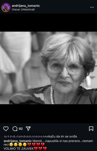 – Mami napustila si nas prerano. Nemam reči. Volimo te zauvek – stoji u Andrijaninoj objavi uz emtotikone crvenog srca i suzama u očima.