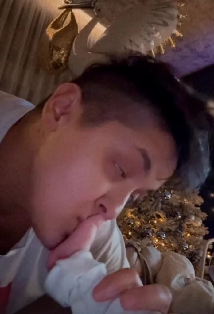 Na snimku se vidi Marija kako se igra sa sinovljevom nožicom, a zatim ga nežno ljubi, topeći se u prisustvu svog deteta. Pevačica je već ranije pokazala dečakovu sobu koja je ukrašena novogodišnjom jelkom i oduševila pratioce.