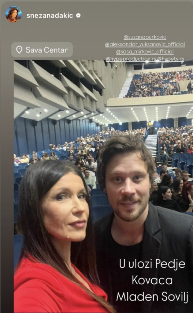 Potom je objavio fotografiju voditeljke emisija „Male stvari“ i „Sada i ovde“ na Hype TV, Snežanu Dakić, sa glavnim glumcem Srđanom Soviljem.