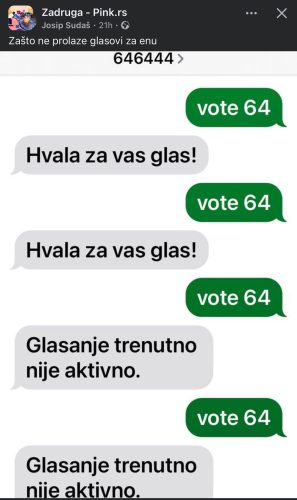 – Glasanje trenutno nije aktivno – glasila je poruka koju je dobila njena podrška.