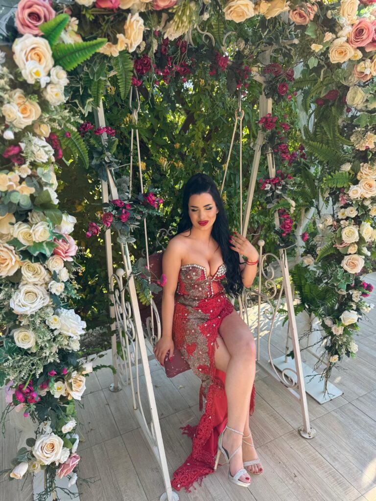 Slavljenica se pojavila u crvenoj haljini dugoj do poda, pripijenoj uz telo. Mlada pevačica se potrudila da sve bude ukrašeno crvenim ružama, koje su simbol ljubavi.