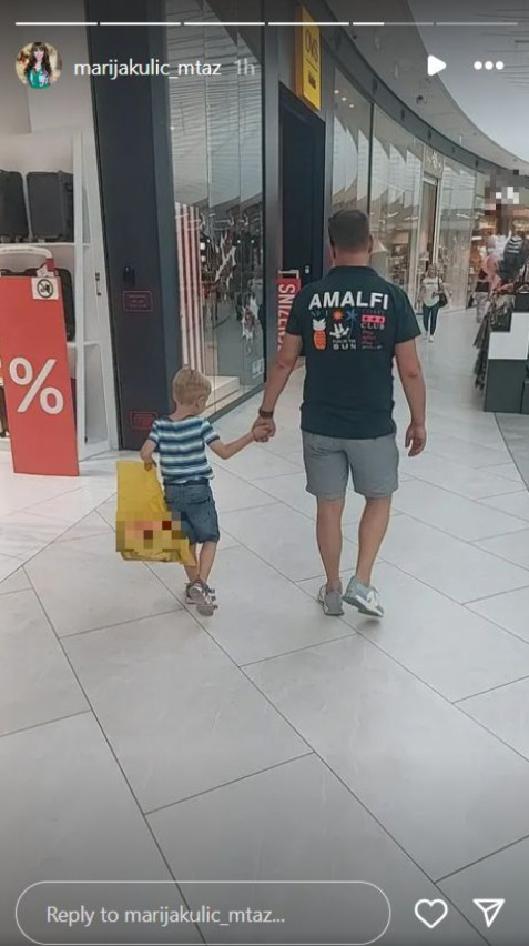 Na fotografijama se može videti kako se otac i sin šetaju tržnim centrom sa kesom iz poznate prodavnice igračaka i kako su zajedno razgledali igračke.