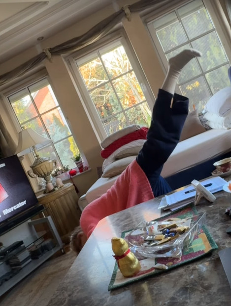Brena je radila vežbe za nogu, a Viktor je uz snimak postavio pesmu „Show must go on“ što znači „Šou mora da se nastavi“.