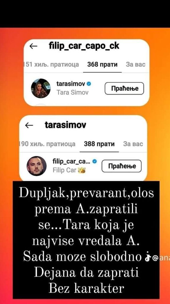 Reading: PUKLA TIKVA! Aleksandra i Filip Car definitivno RASKINULI! “SAJBER S*KS, PREVARE, DOPISIVANJA” Isplivao ŠOK dokaz (FOTO)