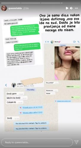– Dođi gore, molim te dođi – nakon ovoga usledili su i pozivi, pa ga je Rialda blokirala.