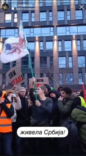 Na današnjem protestu ispred Ustavnog suda, jedan od „istaknutijih“ učesnika bio je Vuk Marinović, potpredsednik Omladine Novog DSS, koji je, kao i mnogi drugi „studenati“ koji su se priključili ovom skupu, očigledno na platnom spisku tajkuna Dragana Đilasa.