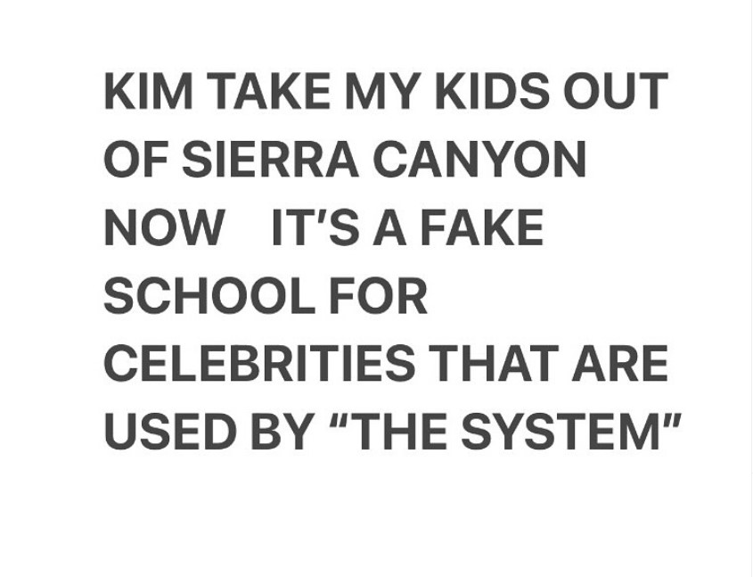 – Kim, izvedi moju decu iz „Sijera Kanjona“ sada, to je lažna škola za slavne ličnosti koje sistem koristi – poručio je Kanje bivšoj supruzi u objavi na Instagramu.