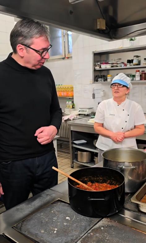 – Sišao sam u kuhinju ovde u Predsedništvu, kao, da im pomognem u pripremi današnjeg ručka. Odmah sam shvatio da se u pripremu hrane razumem taman koliko se u politiku razumeju oni koji su držali govore u Novom Sadu – poručio je predsednik Srbije Aleksandar Vučić.