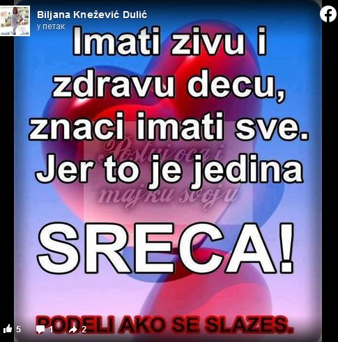-Imati živu i zdravu decu, znači imati sve. Jer to je jedina sreća – napisala je skrhana majka.