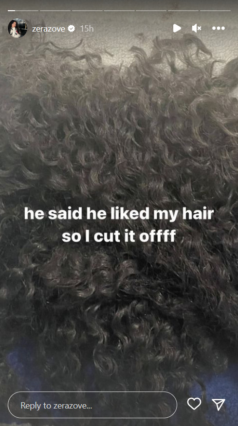 Ona je, naime, objavila stori na kom je prvobitno bila fotografija njene isečene kose uz reči „Rekao je da voli moju kosu, pa sam je odsekla“.