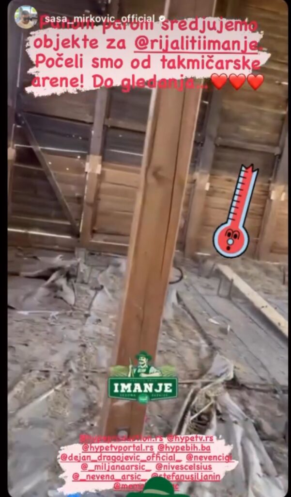– Punom parom sređujemo objekte za @rijalitiimanje. Počeli smo od takmičarske arene! Do gledanja – napisao je u svojoj objavi Saša Mirković.