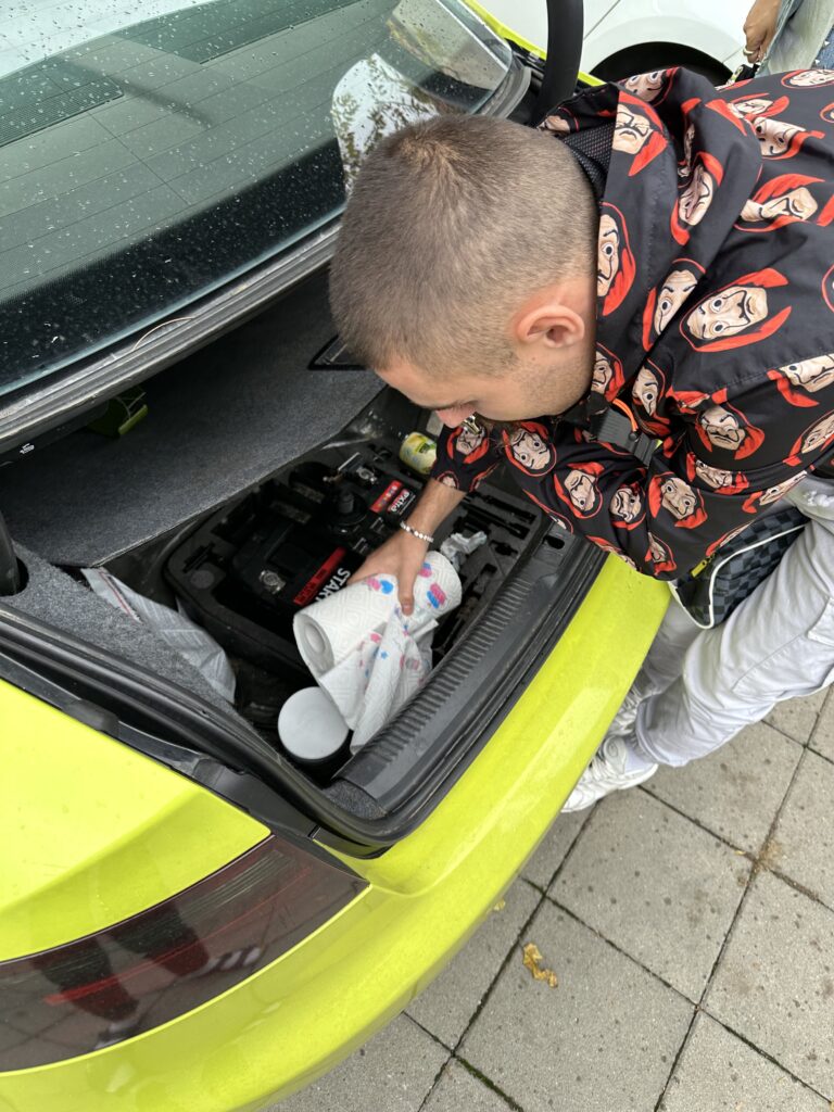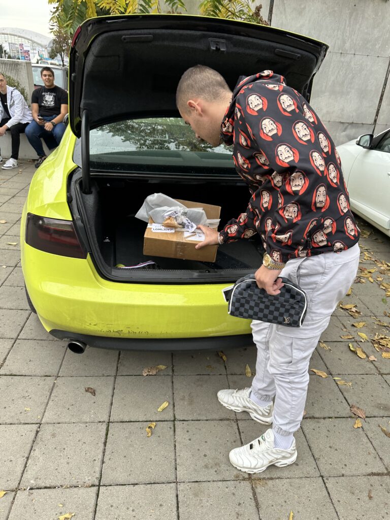 Ekipa Hype portala je mladog pevača uslikala na jednom beogradskom parkingu dok je on sređivao svoj gepek automobila.