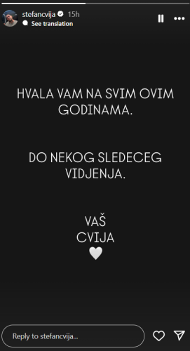 „Hvala vam na svim ovim godinama. Do nekog sledećeg viđanja. Vaš Cvija“, napisao je naa Instagramu.