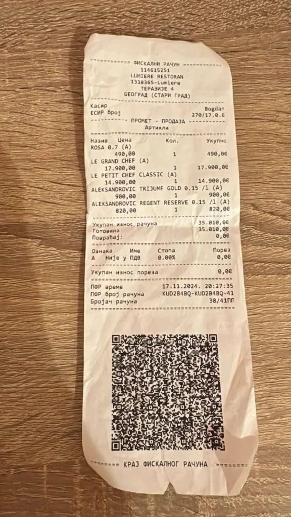 „Usluga nije bila ni blizu onoga što sam očekivao za ovoliki novac„. Prema rečima našeg čitaoca, račun za večeru za dve osobe dostigao je 35.000 dinara, što je izazvalo veliki šok i razočarenje. Za one koji su se odlučili na ovo iskustvo, umesto oduševljenja, imaju gorak ukus u ustima, to je zasigurno.