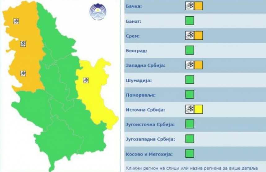 Takođe, na području istočne Srbije upaljen je žuti meteoalarm.