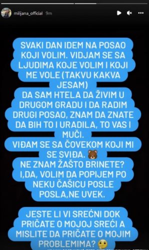 Naime, sudeći prema njenom Instagram nalogu, Bogdanovićeva živi i radi u rodnom mestu, obilazi kafiće i vozi se gradskim prevozom, zbog čega su pojedini zlurado primetili da je „propala“, te im se ona obratila putem društvenih mreža.