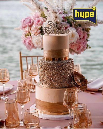 Za ovu priliku, Ruža je odabrala da cela dekoracija bude u zlatnim nijansama, pa je tako i torta na tri sprata bila dekorisana zlatnim ukrasima.