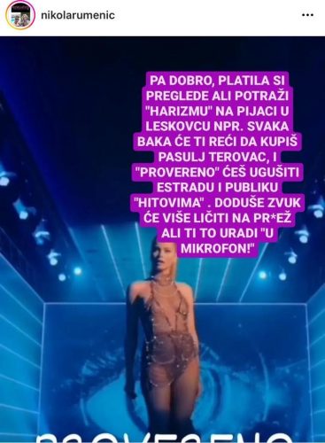 Pavlovićeva treba takodje da odustane od karijere po scenariju iz serije “Pevačica” i da se okane magijskih rituala i uništavanju svojih kolega i kolegenica jer joj to na kraju neće ništa dobro doneti u karijeri. – kaže za Hype naš poznati novinar i urednik Nikola Rumenić i dodaje da sve što misli o Milici izražava na svom instagram profilu.