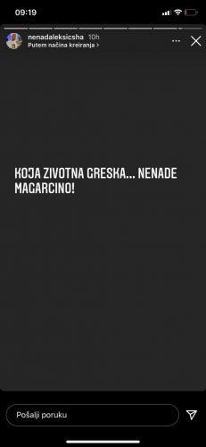 Naime, ona tvrdi da joj je Ša pretio i razvaljivao vrata dok je u ruci imao nož. Sada se nakon toga oglasio i Aleksić koji je na Instagramu objavio kratku poruku.
