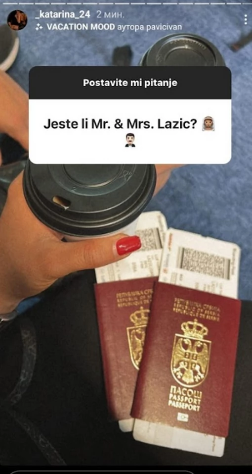 oni veoma često putuju zajedno, pa se sada na fotografiji koju je Kaća stavila na Instagram jasno vidi da i na Katarininoj i na njegovoj karti piše prezime Lazić.