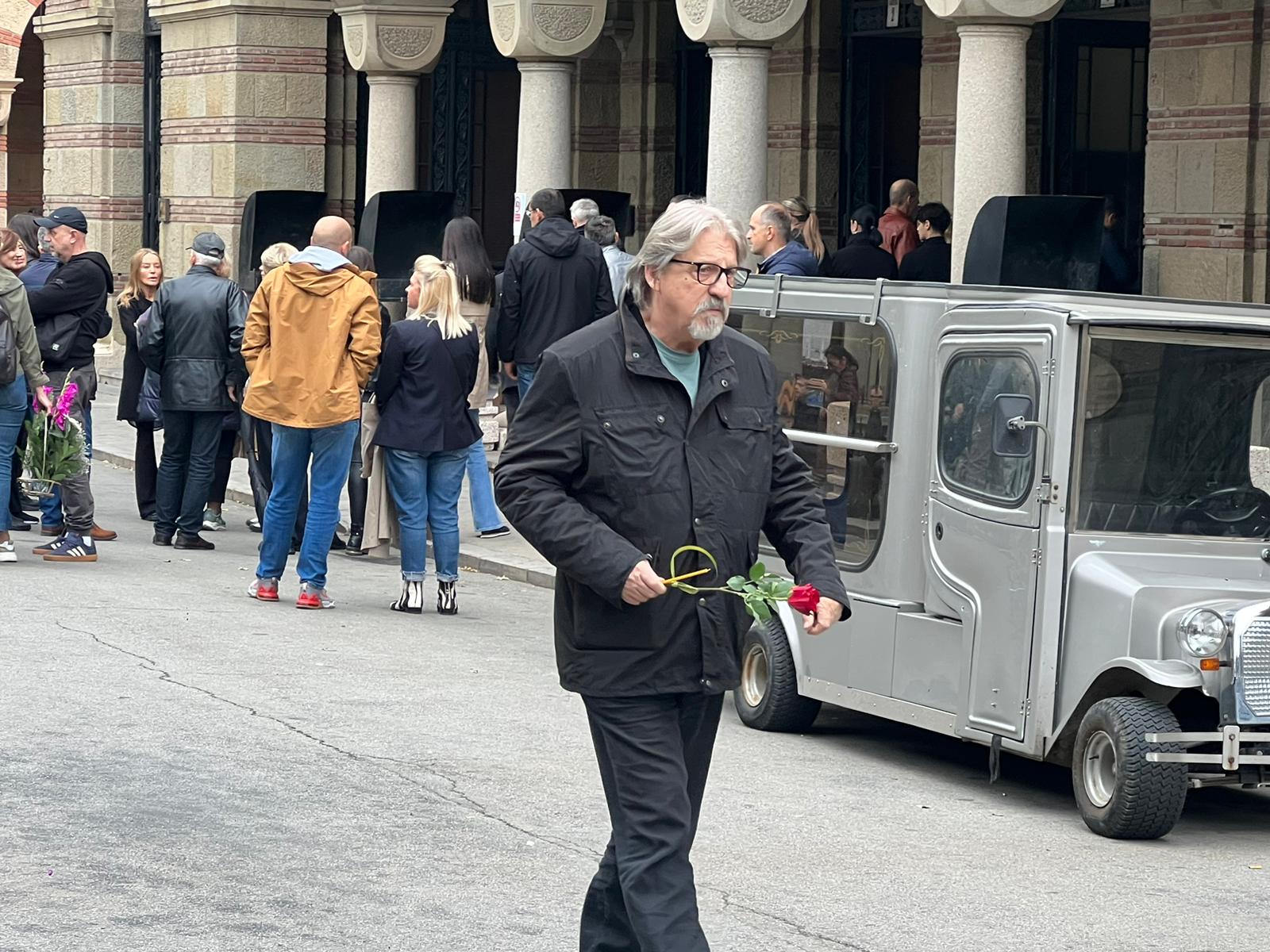Zoran Živković u pratnji Biljane Vilmon došao je na ispraćaj a u raukama je nosio crvenu ružu. Sa istim cvetom pristigao je i reditelj Lordan Zafranović, a tu su i Caci Mihailović i Goran Marković. Stigao je i Radoš Bajić sa belom ružom.