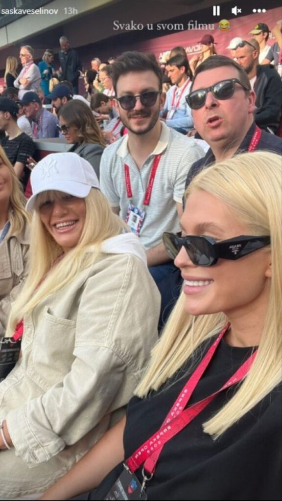 Na jednoj od fotografija vidi se Saška kako sedi sa sestrom, kumom i roditeljima, dok na drugoj fotografiji vatreno navija za Novaka. Saška je uz fotografiju napisala: „Svako u svom filmu“. Ovo nije prvi put da je Saška pratila Novaka na nekom od njegovih mečeva, ali je ovo prvi put nakon porođaja.
