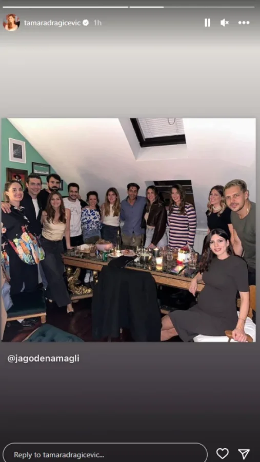 Naime, Miloš i Ivana uživali su u društvu prijatelja i Miloševih kolega, a Ivana je, zbog trudničkog stomaka, sedela. Ovu fotografiju podelili su svi, a komplimenti na račun Bikovićeve devojke neprestano su stizali.