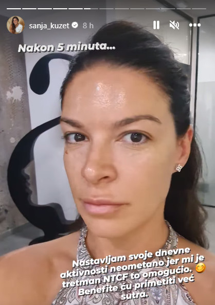 Sanja je ceo proces podelila sa pratiocima na Instagramu, pa je potom pokazala kako njeno lice izgleda bez trunke šminke i to odmah nakon tretmana.