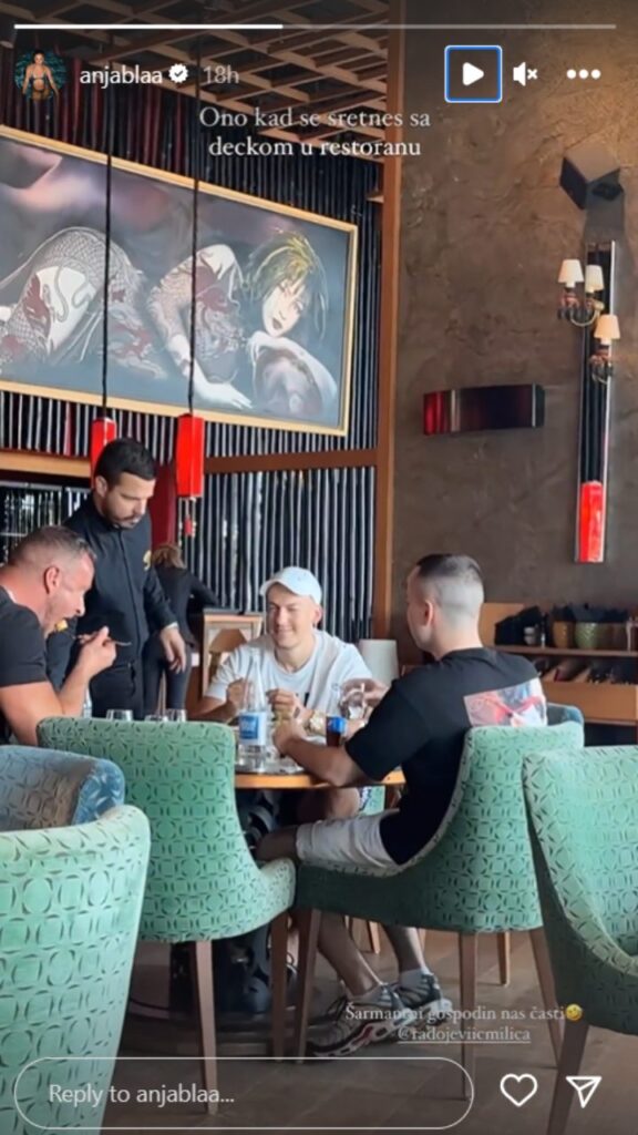 Ona se tako našla na ručku sa drugaricom, a potom je u restoranu naišla na neočekivano iznenađenje. Naime, ona i Bogdan su izabrali isto mesto za viđanje sa prijateljima, te ga je Anja usnimila samo nekoliko stolova dalje od nje kako takođe uživa u ručku.