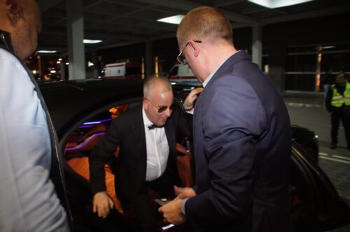 On je stigao na koncert u skupocenoj crnoj limuzini, a pevač je pred početak spektakla bio vidno raspoložen.