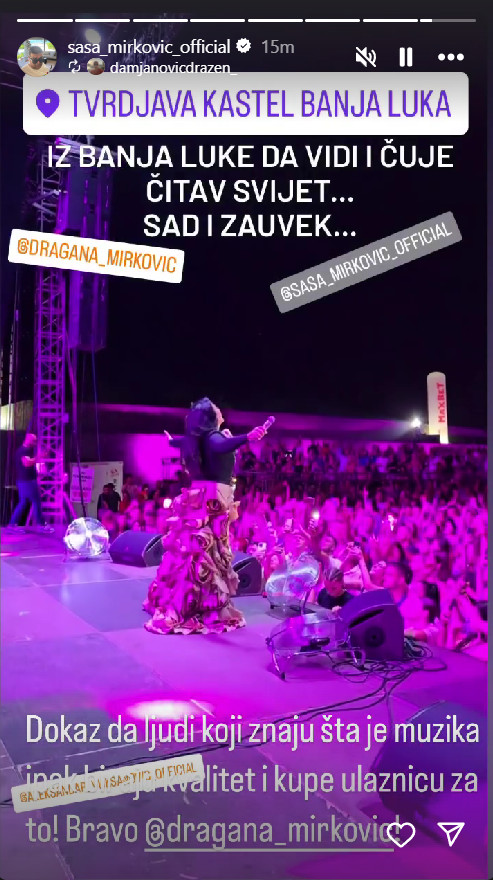 Naime, ovim povodom oglasio se i direktor i vlasnik Hype produkcije i televizije Saša Mirković. On je na svom instagram profilu objavio snimak na stori Dragane Mirković dok je pevala Sad i zauvek zajedno sa mnogobrojnom publikom!